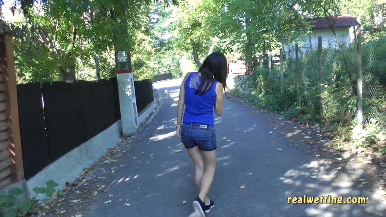 Antonia - Jeans Shorts On The Street While Taking Directions On The Phone
