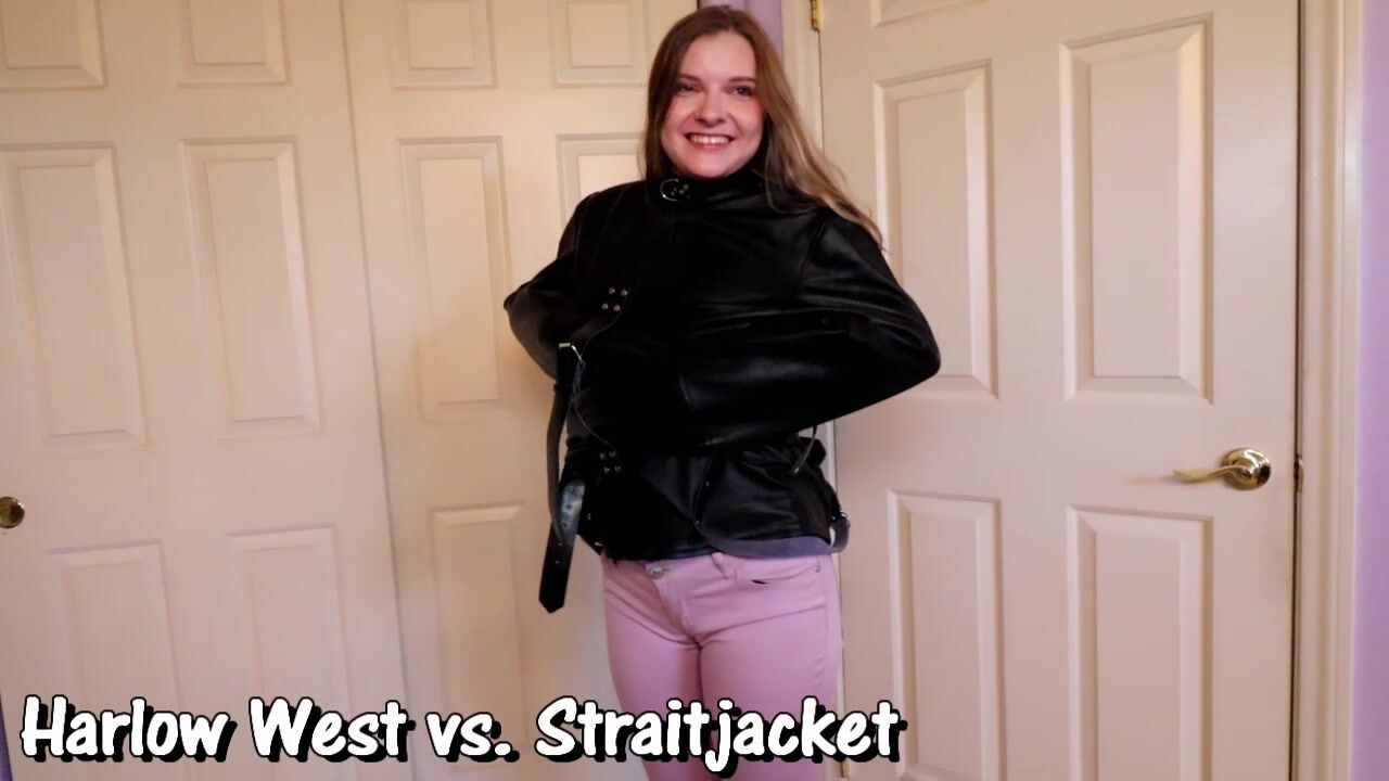 Cutie girl next door Harlow West is wearing her 1st ever straitjacket & struggling to escape because she really needs to pee. Her bursting bladder gives out pretty quickly as she screams & piss is pouring out down her tight pants. Lots of giggling as she peels off her piss pants & we talk about all things urine!